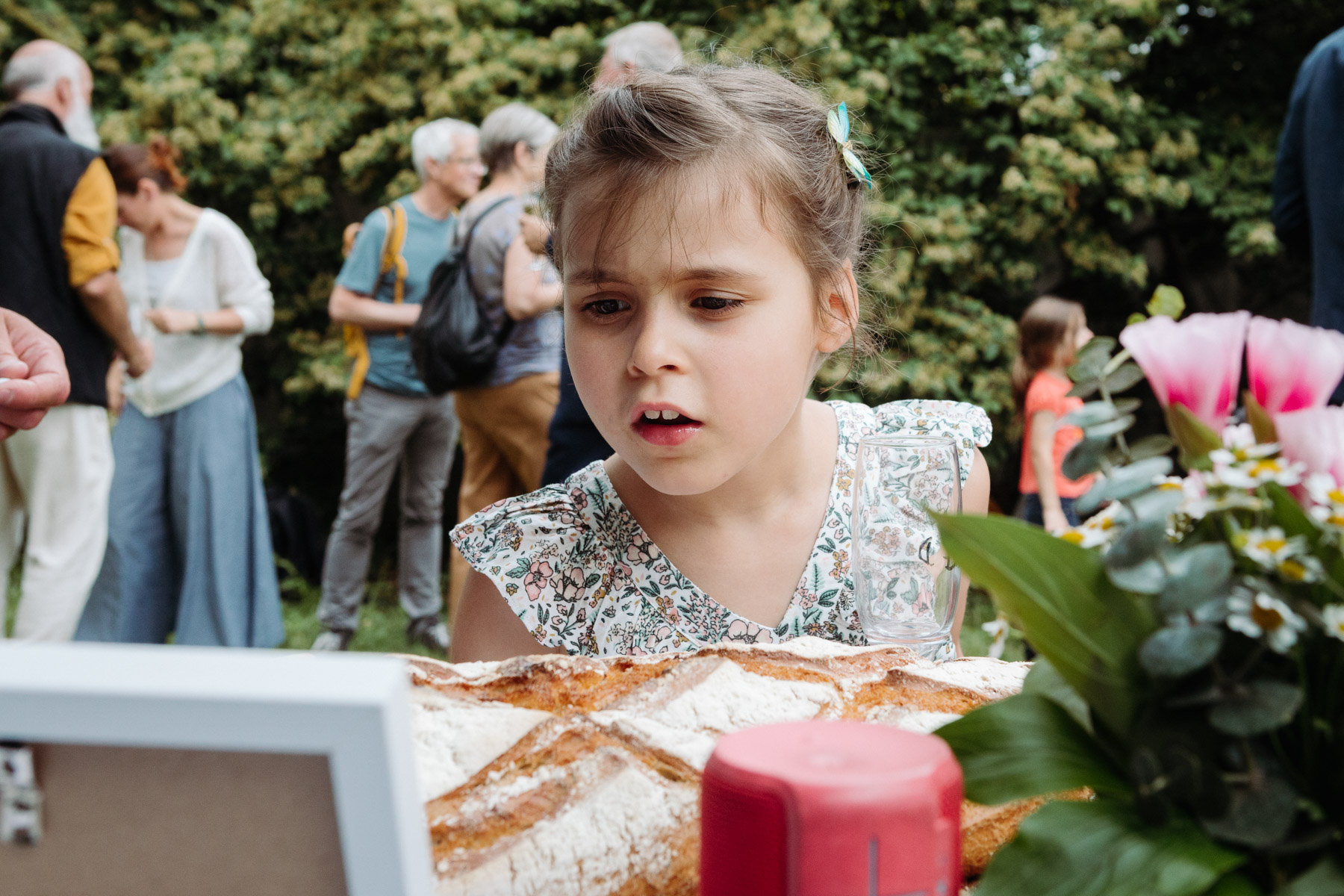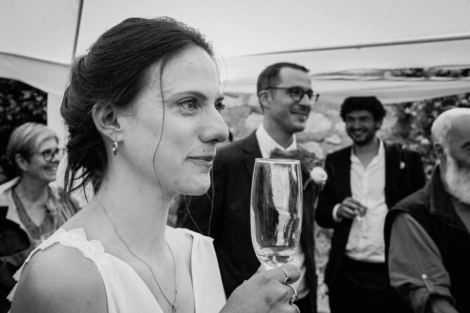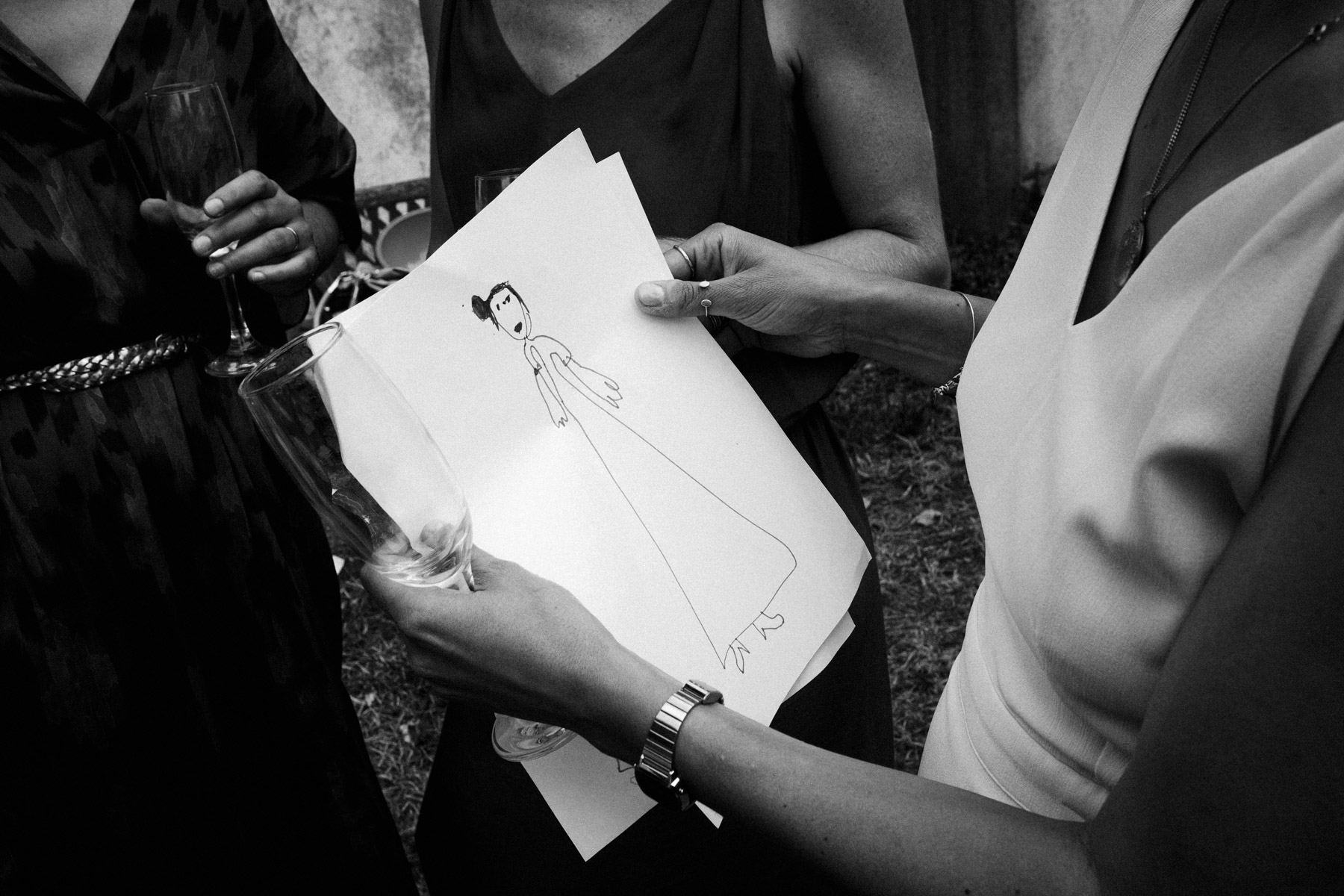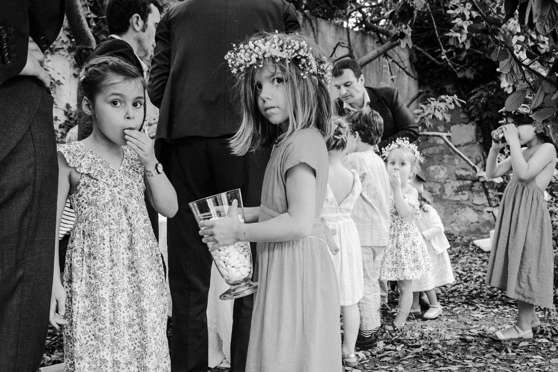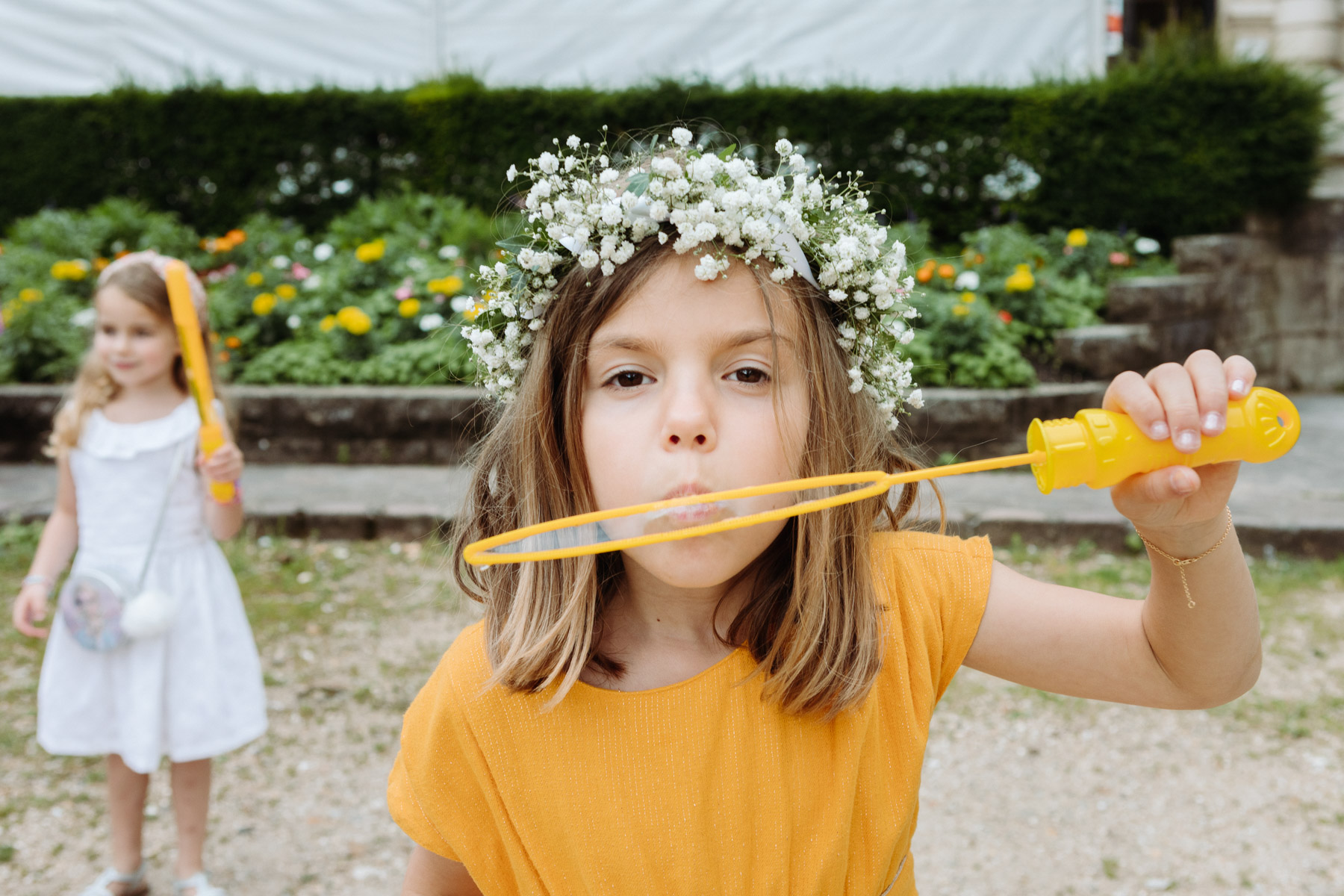 Claire et Camille ont opté pour la simplicité dans l’organisation de leur mariage : cocktail maison, jeux pour enfants, barnum pour la pluie, enceintes bluetooth pour la musique… Et restrictions sanitaires obligeant, un petit comité constitué d’autant d’adultes que d’enfants était au rendez-vous.